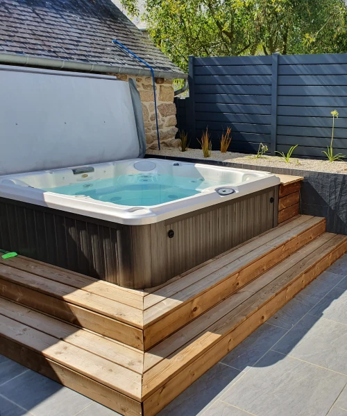 En tant que partenaire privilégié de Jacuzzi®, Mahé Paysage vous accompagne dans le choix et l’installation de votre spa, que ce soit pour votre terrasse, jardin ou espace intérieur.